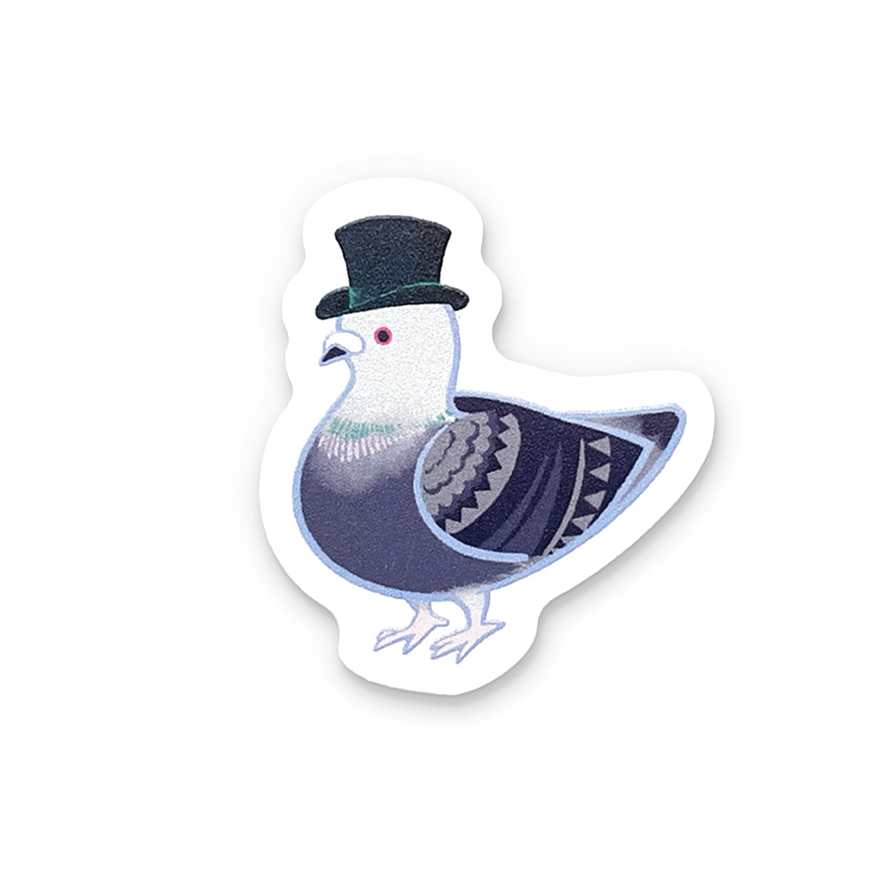 いろんなハットをかぶったおしゃれな鳩たち〈鳩ハット〉のステッカーシリーズ。こちらはオペラハットをかぶったカワラバトです。